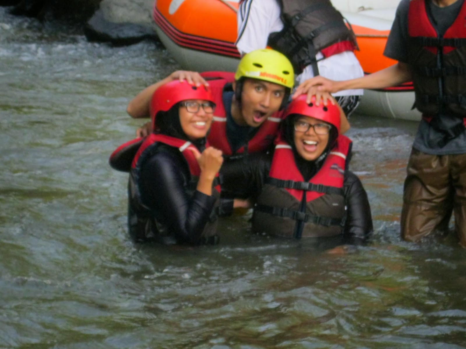 Back to the topic, hari itu adalah pengalaman rafting pertama saya. Saya berangkat hari Minggu, tanggal 15 September 2013 sekitar pukul 13.00. Tidak direncanakan, hanya iseng mengiyakan ajakan Mbak Ika, teman kos saya, saat itu juga. Sebenarnya itu adalah liburan gengnya yang rutin diadakan setiap bulan, saya nimbrung karena Mbak Ika ingin ditemani sebab adik perempuannya mendadak tidak bisa ikut. Terlebih, Mbak Ika bilang ini gratis! Yep, itu adalah bagian terpenting dari tawar menawar ini sehingga saya segera bergegas menyiapkan baju ganti dan membereskan diri selama 10 menit. :p